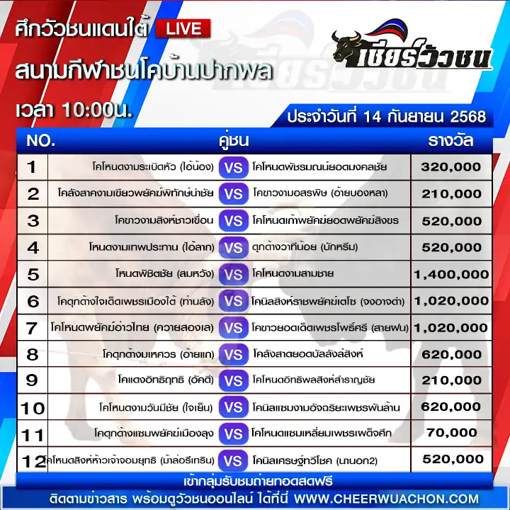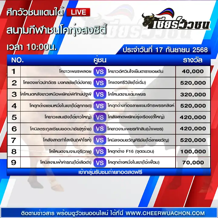 สำหรับคอวัวชนตัวจริง การติดตามชมการแข่งขันสดๆ