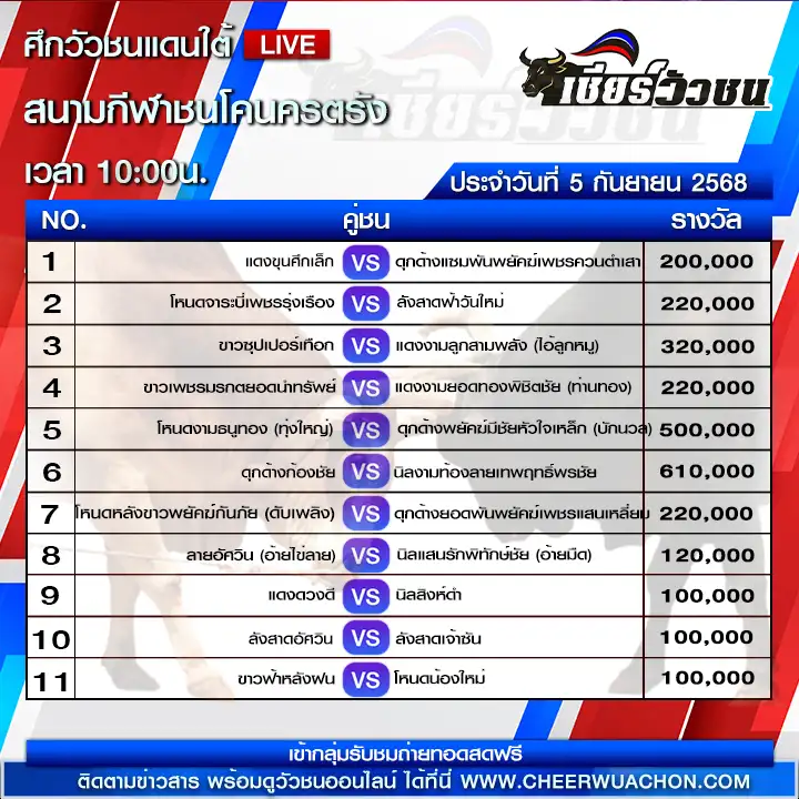 สำหรับคอวัวชนตัวจริง การติดตามชมการแข่งขันสดๆ