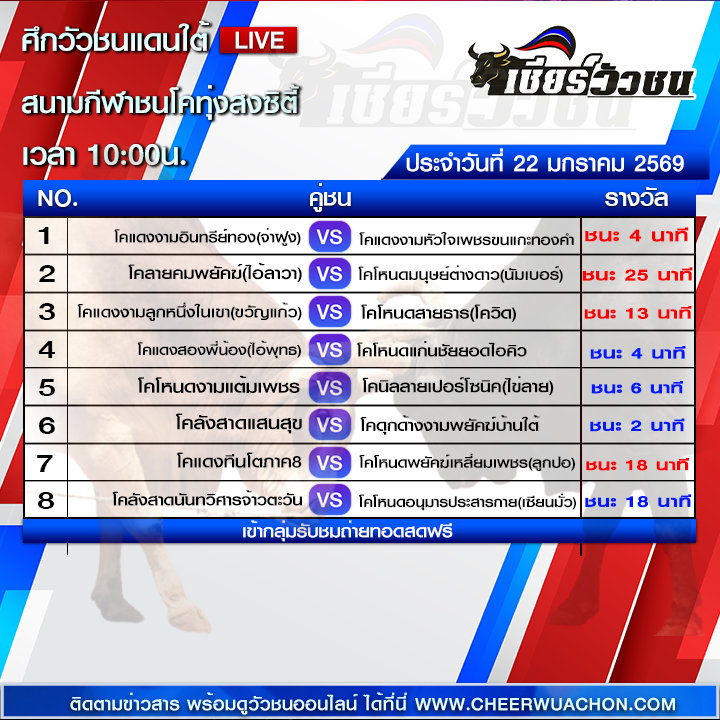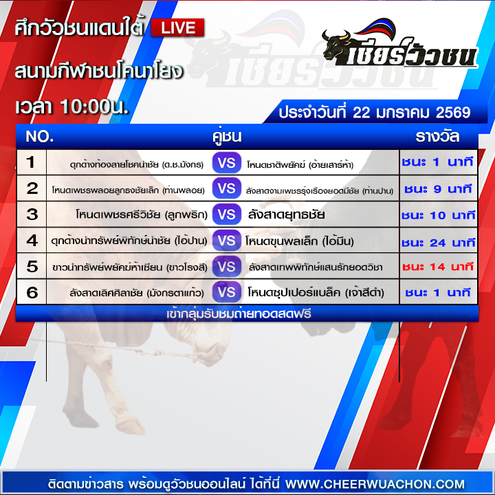 สำหรับคอวัวชนตัวจริง การติดตามชมการแข่งขันสดๆ